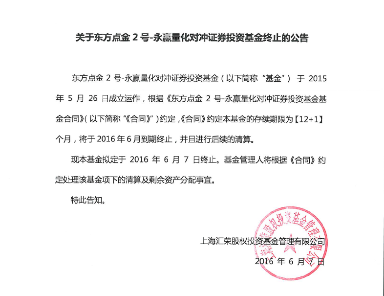 附件:關(guān)于東方點(diǎn)金2號(hào)-永贏量化對(duì)沖證券投資基金終止的公告
